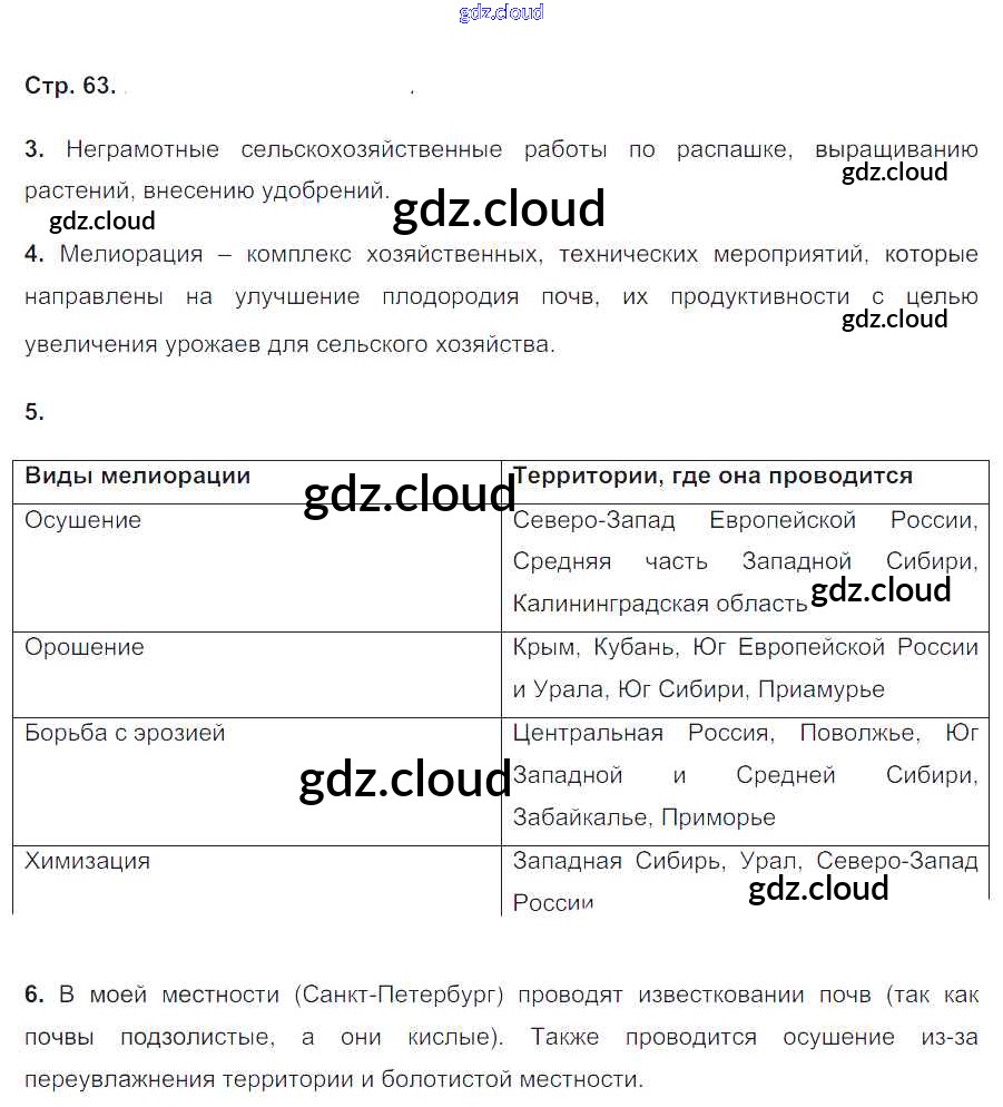 Ответ на задание 63 Рабочая тетрадь География за 8 (восьмой) класс Баринова, Дронов УМК 2017 ФГОС онлайн и без номера телефона.