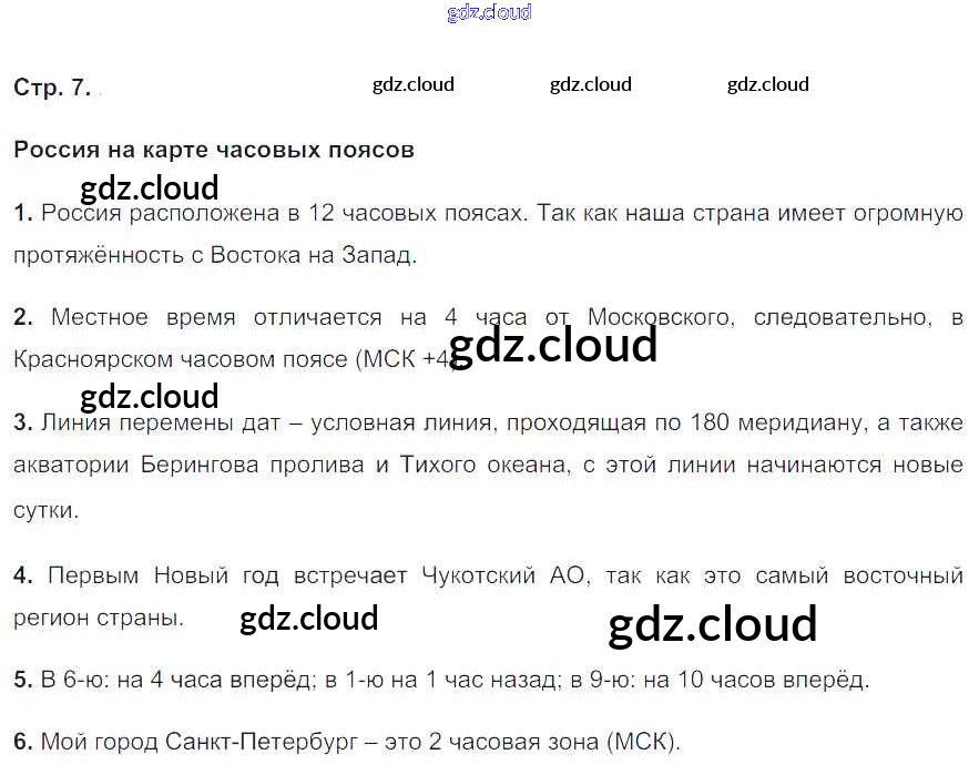 Ответ на задание 7 Рабочая тетрадь География за 8 (восьмой) класс Баринова, Дронов УМК 2017 ФГОС онлайн и без номера телефона.