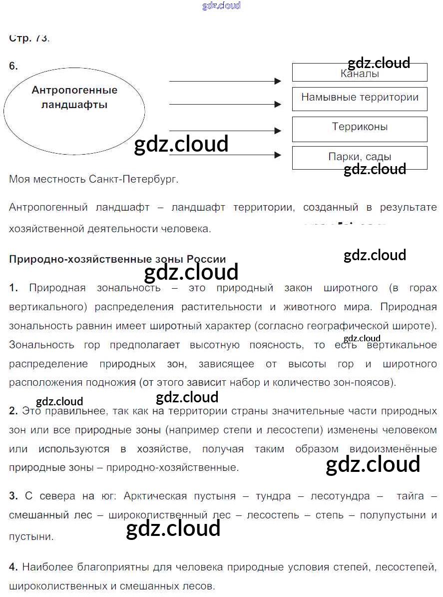 Ответ на задание 73 Рабочая тетрадь География за 8 (восьмой) класс Баринова, Дронов УМК 2017 ФГОС онлайн и без номера телефона.