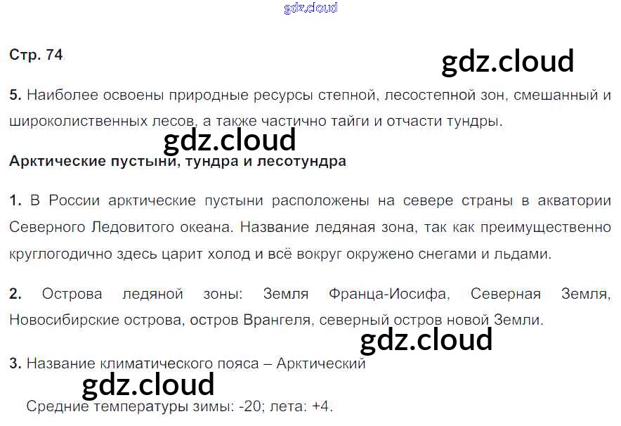 Ответ на задание 74 Рабочая тетрадь География за 8 (восьмой) класс Баринова, Дронов УМК 2017 ФГОС онлайн и без номера телефона.