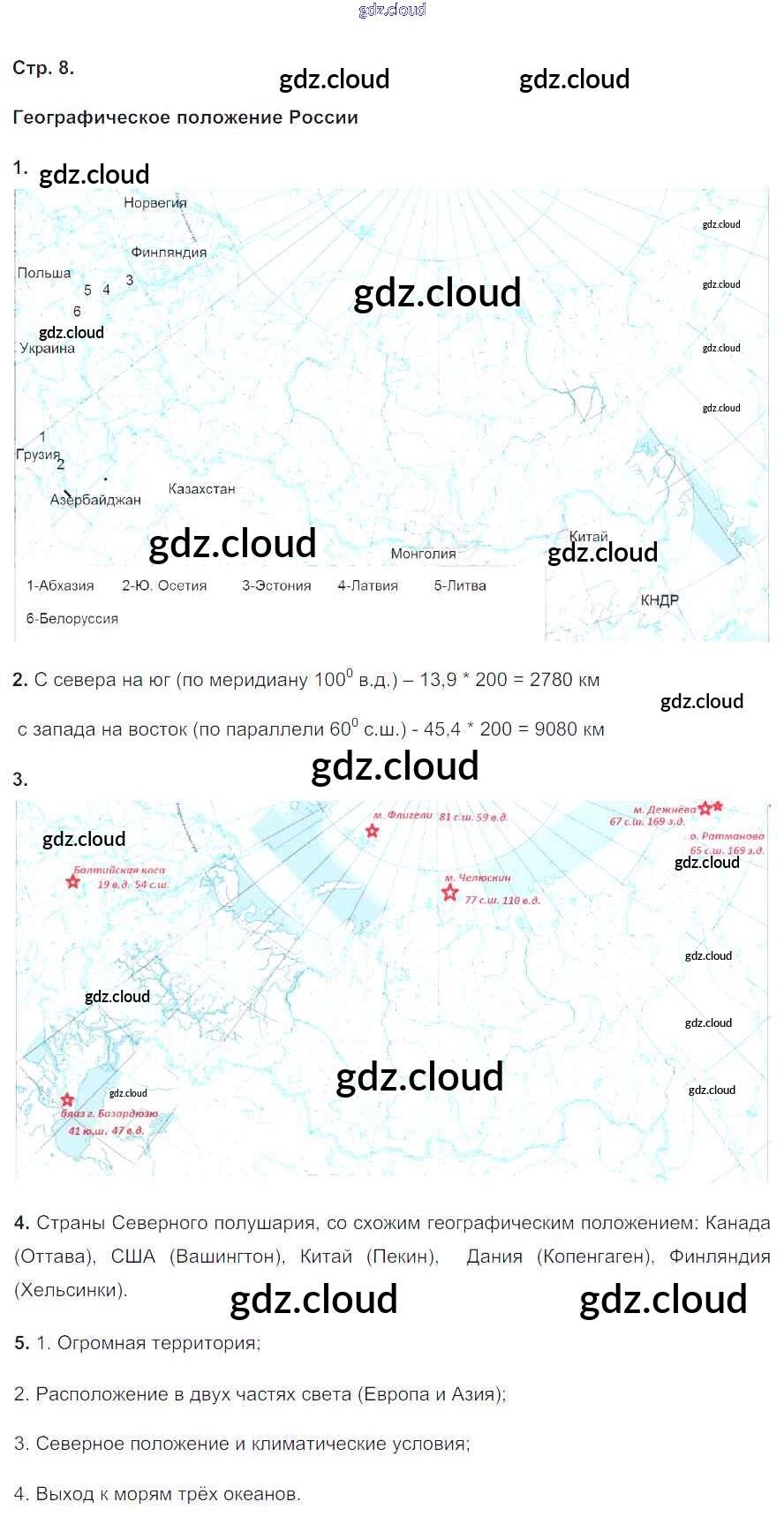 Ответ на задание 8 Рабочая тетрадь География за 8 (восьмой) класс Баринова, Дронов УМК 2017 ФГОС онлайн и без номера телефона.