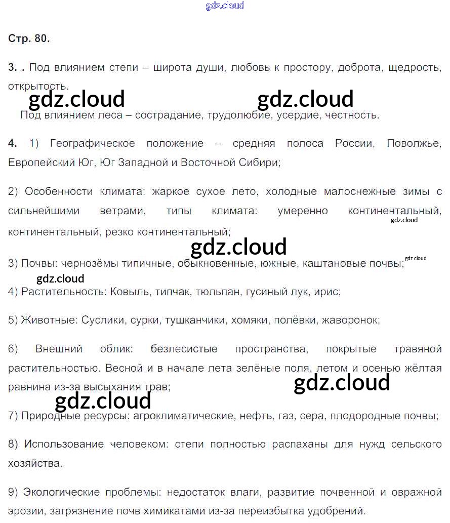 Ответ на задание 80 Рабочая тетрадь География за 8 (восьмой) класс Баринова, Дронов УМК 2017 ФГОС онлайн и без номера телефона.