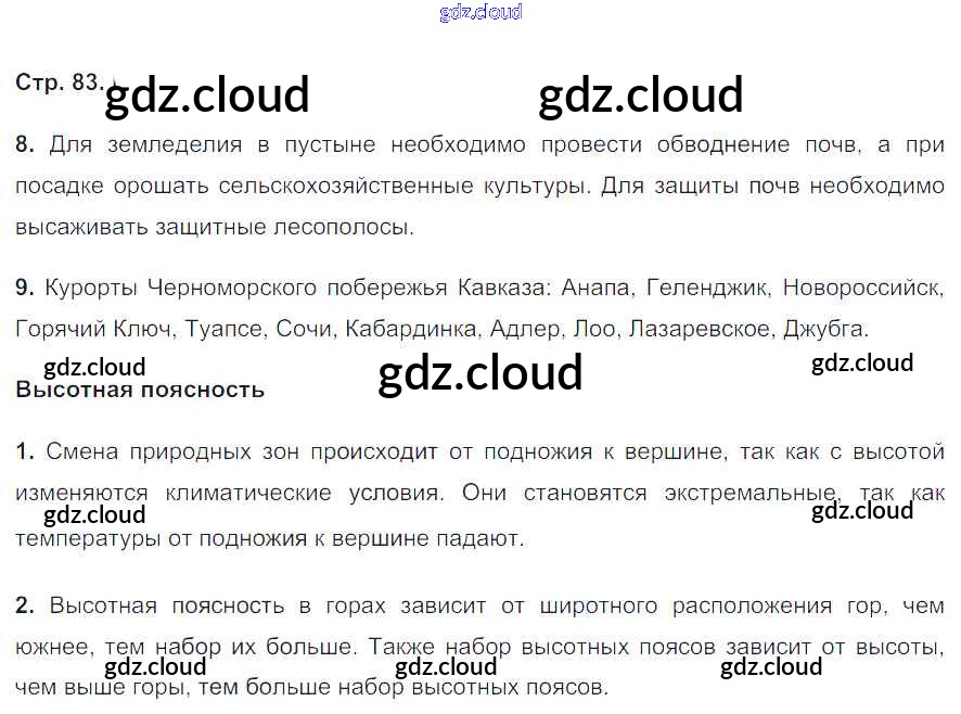 Ответ на задание 83 Рабочая тетрадь География за 8 (восьмой) класс Баринова, Дронов УМК 2017 ФГОС онлайн и без номера телефона.