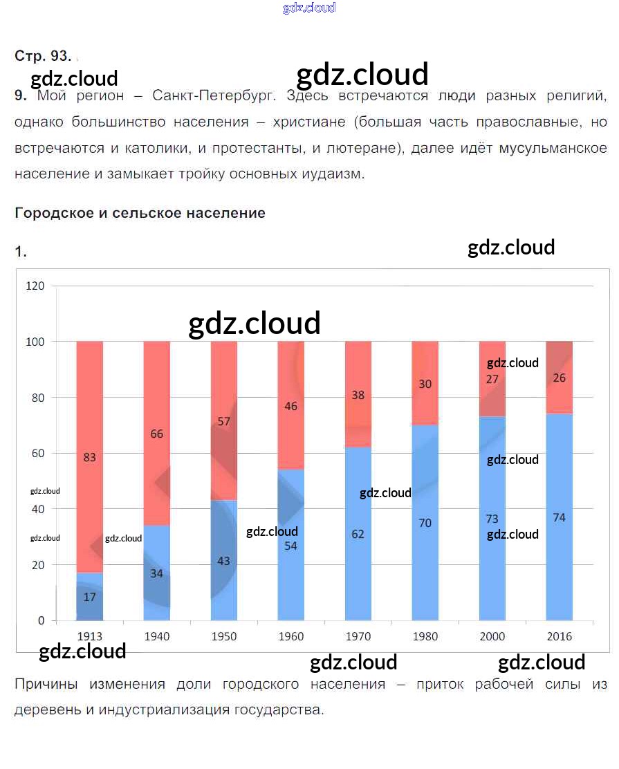 Ответ на задание 93 Рабочая тетрадь География за 8 (восьмой) класс Баринова, Дронов УМК 2017 ФГОС онлайн и без номера телефона.