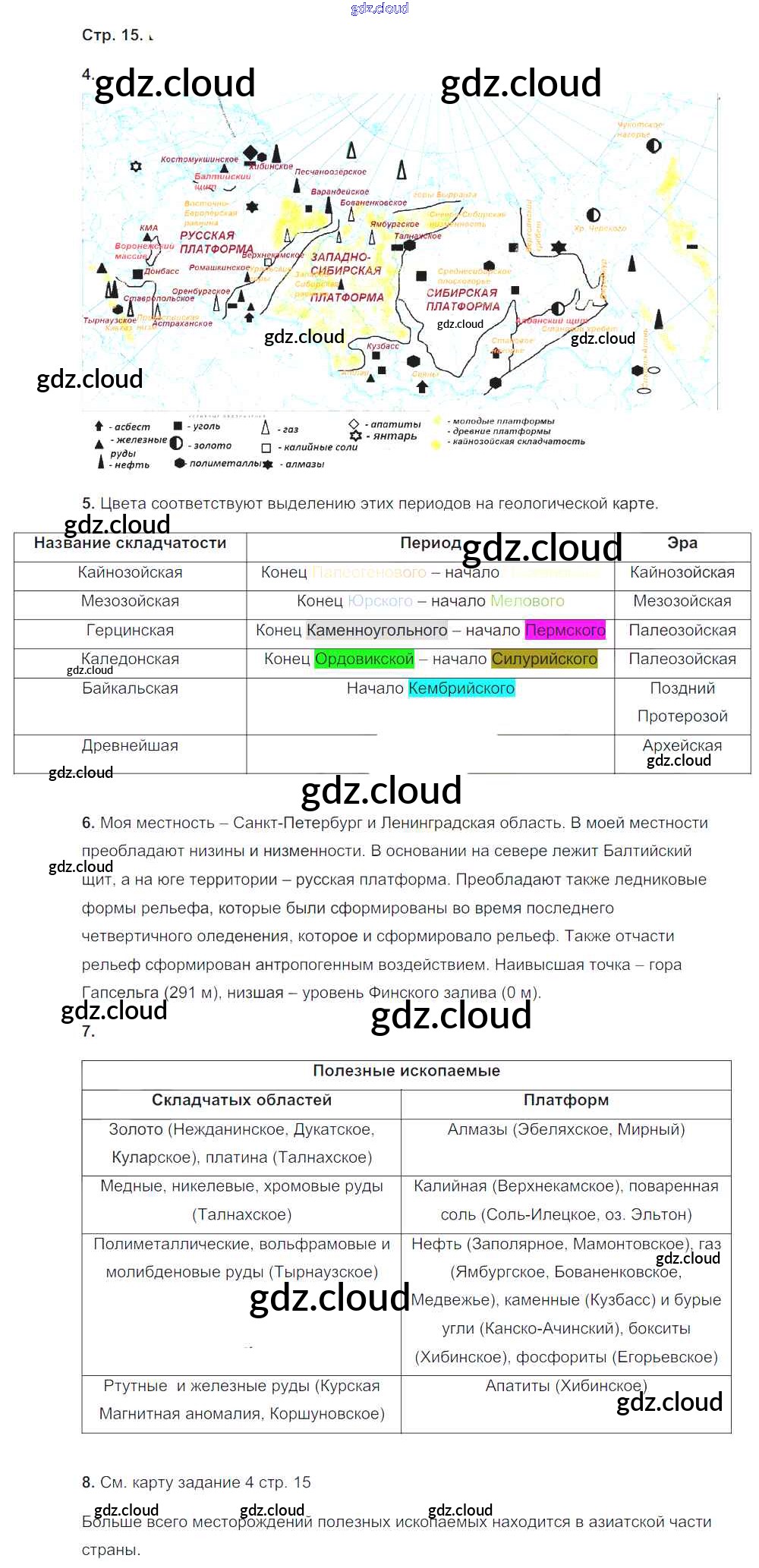 Ответ на задание 15 Рабочая тетрадь География за 8 (восьмой) класс Баринова, Суслов УМК 2019 ФГОС онлайн и без номера телефона.