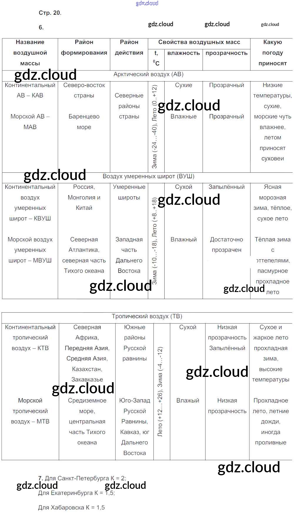 Ответ на задание 20 Рабочая тетрадь География за 8 (восьмой) класс Баринова, Суслов УМК 2019 ФГОС онлайн и без номера телефона.