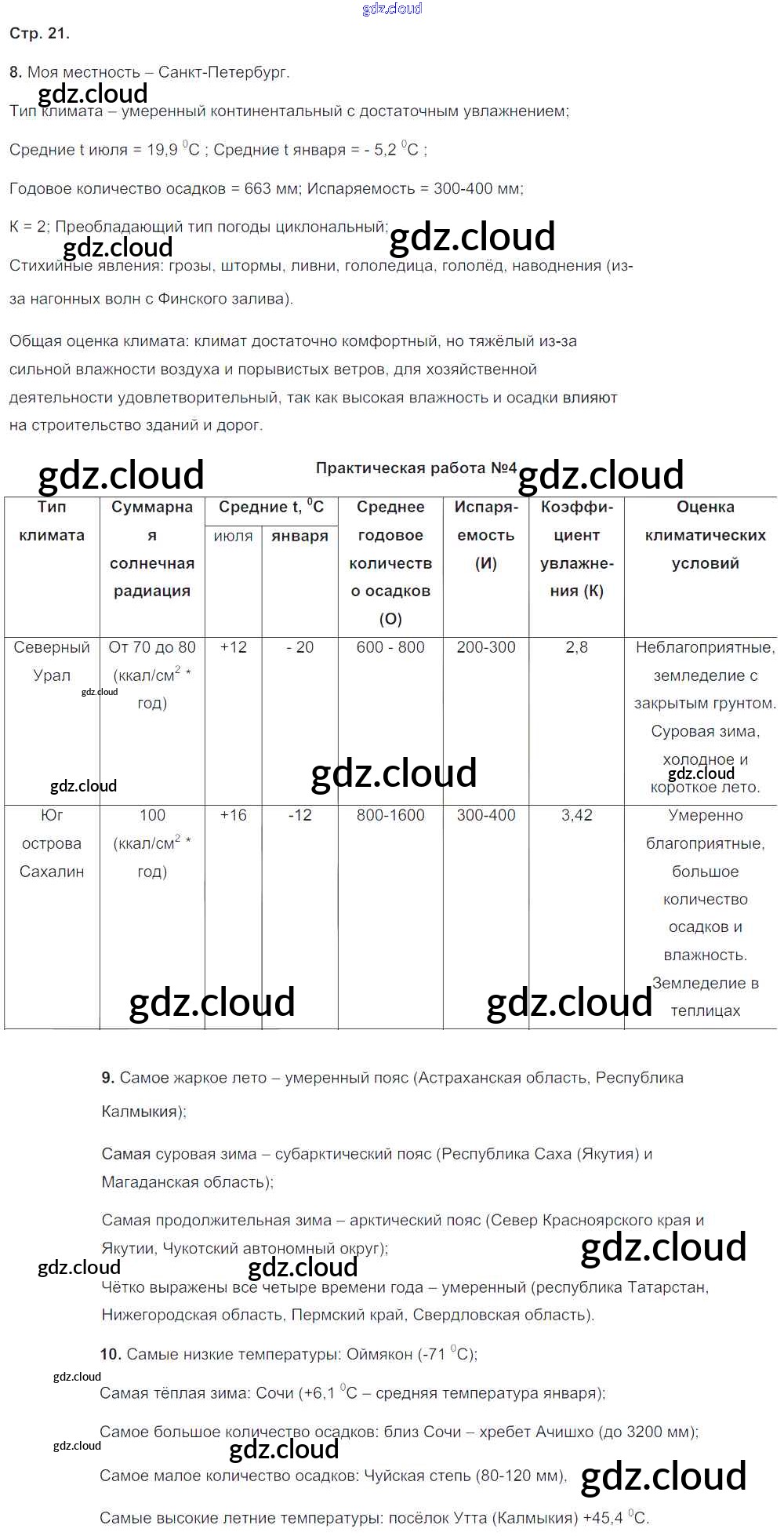 Ответ на задание 21 Рабочая тетрадь География за 8 (восьмой) класс Баринова, Суслов УМК 2019 ФГОС онлайн и без номера телефона.