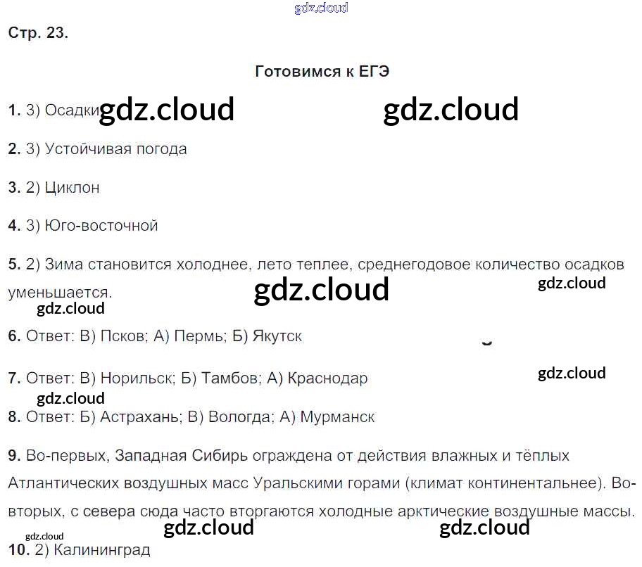 Ответ на задание 23 Рабочая тетрадь География за 8 (восьмой) класс Баринова, Суслов УМК 2019 ФГОС онлайн и без номера телефона.