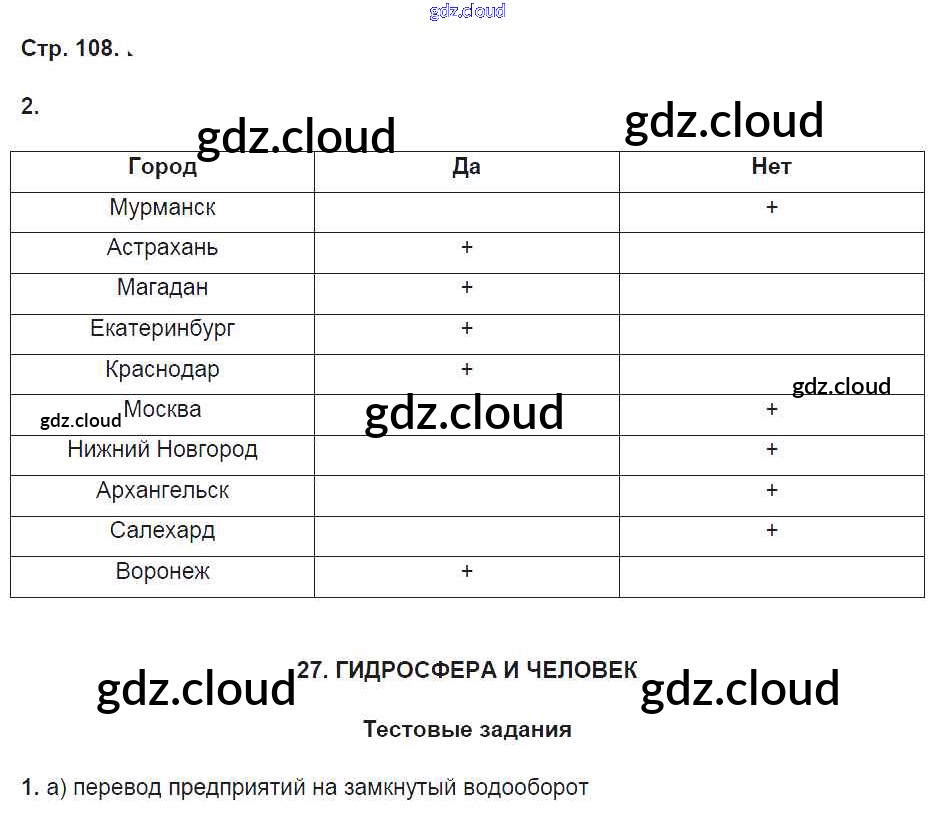 Ответ на задание стр.108 Рабочая тетрадь География за 8 (восьмой) класс Домогацких Инновационная школа 2017 Часть 1, 2
