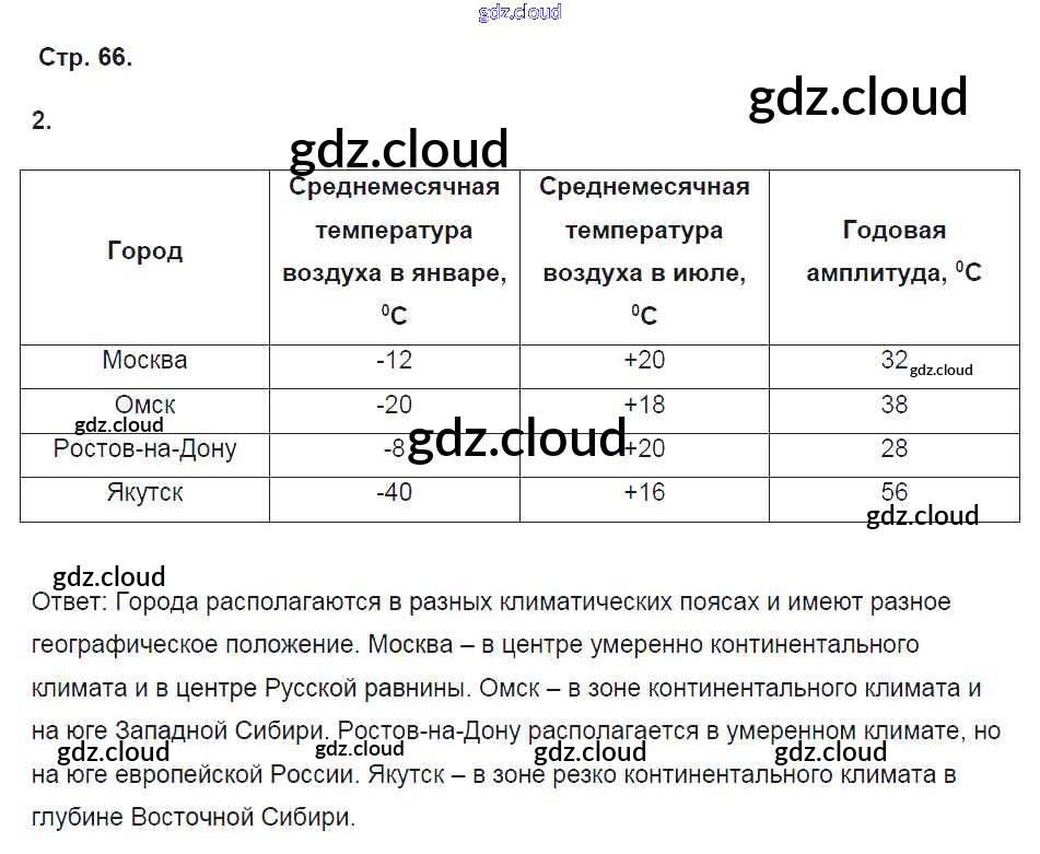 Ответ на задание стр.66 Рабочая тетрадь География за 8 (восьмой) класс Домогацких Инновационная школа 2017 Часть 1, 2