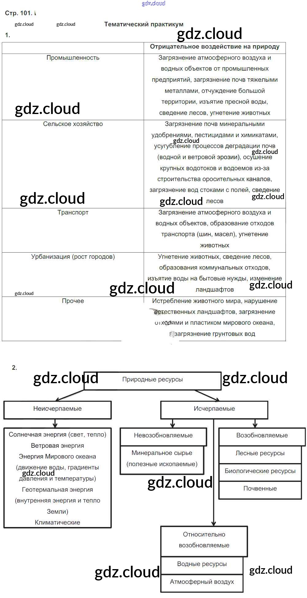 Ответ на задание стр.101 Рабочая тетрадь География за 8 (восьмой) класс Домогацких Инновационная школа 2017 Часть 1, 2