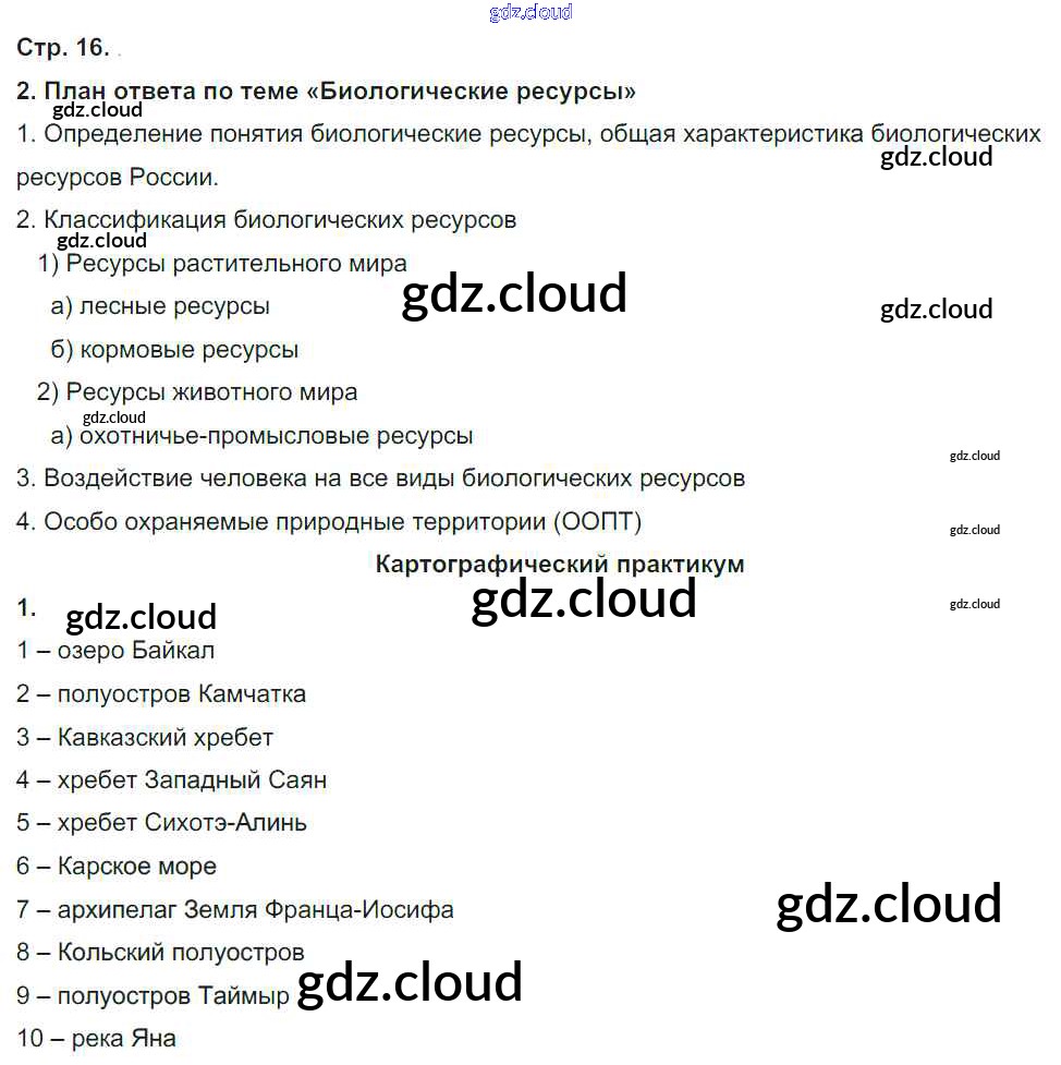 Ответ на задание стр.16 Рабочая тетрадь География за 8 (восьмой) класс Домогацких Инновационная школа 2017 Часть 1, 2