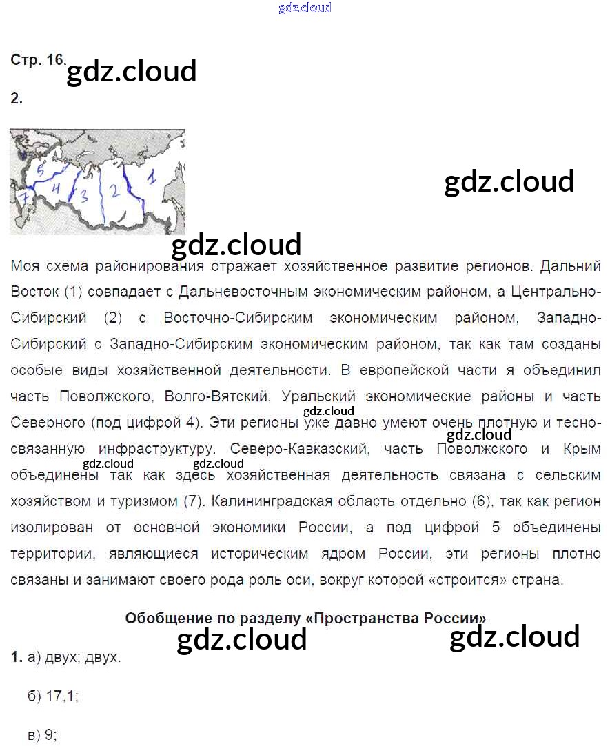 Ответ на задание 16 Рабочая тетрадь География за 8 (восьмой) класс Ким, Марченко, Низовцев УМК 2016 ФГОС онлайн и без номера телефона.