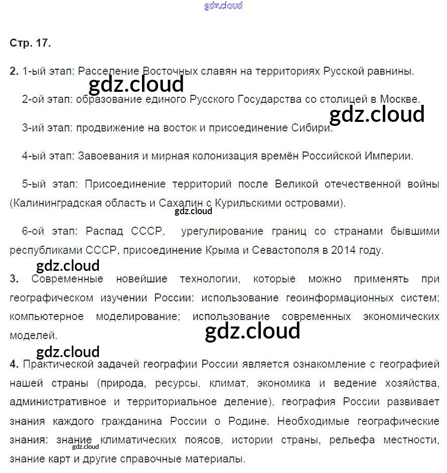 Ответ на задание 17 Рабочая тетрадь География за 8 (восьмой) класс Ким, Марченко, Низовцев УМК 2016 ФГОС онлайн и без номера телефона.