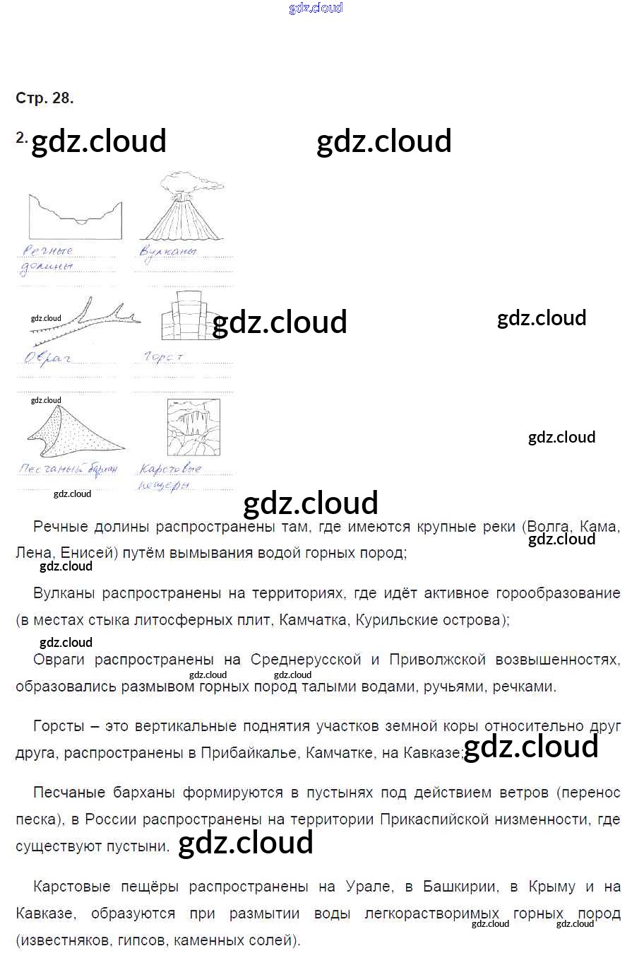 Ответ на задание 28 Рабочая тетрадь География за 8 (восьмой) класс Ким, Марченко, Низовцев УМК 2016 ФГОС онлайн и без номера телефона.