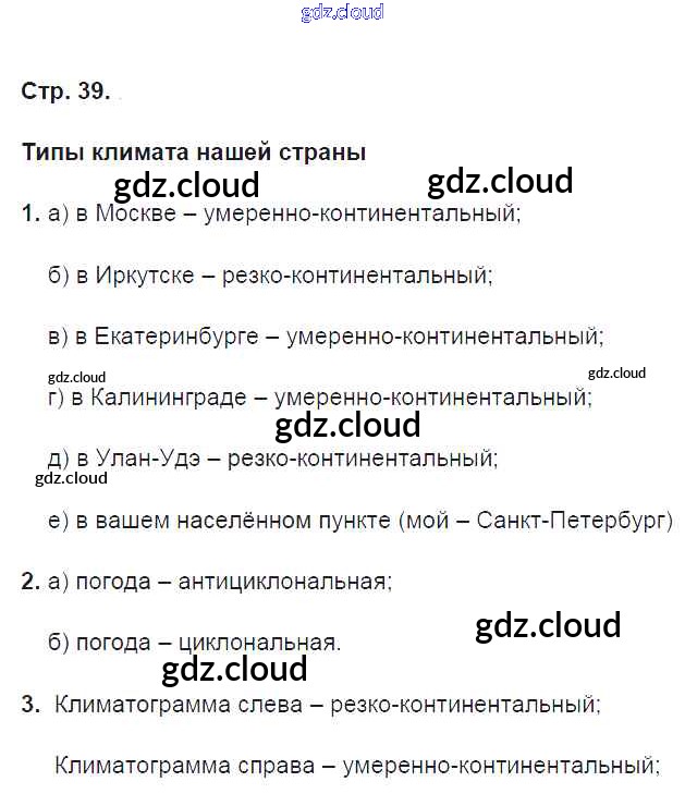 Ответ на задание 39 Рабочая тетрадь География за 8 (восьмой) класс Ким, Марченко, Низовцев УМК 2016 ФГОС онлайн и без номера телефона.