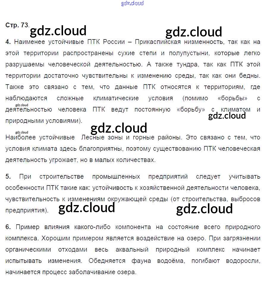 Ответ на задание 73 Рабочая тетрадь География за 8 (восьмой) класс Ким, Марченко, Низовцев УМК 2016 ФГОС онлайн и без номера телефона.