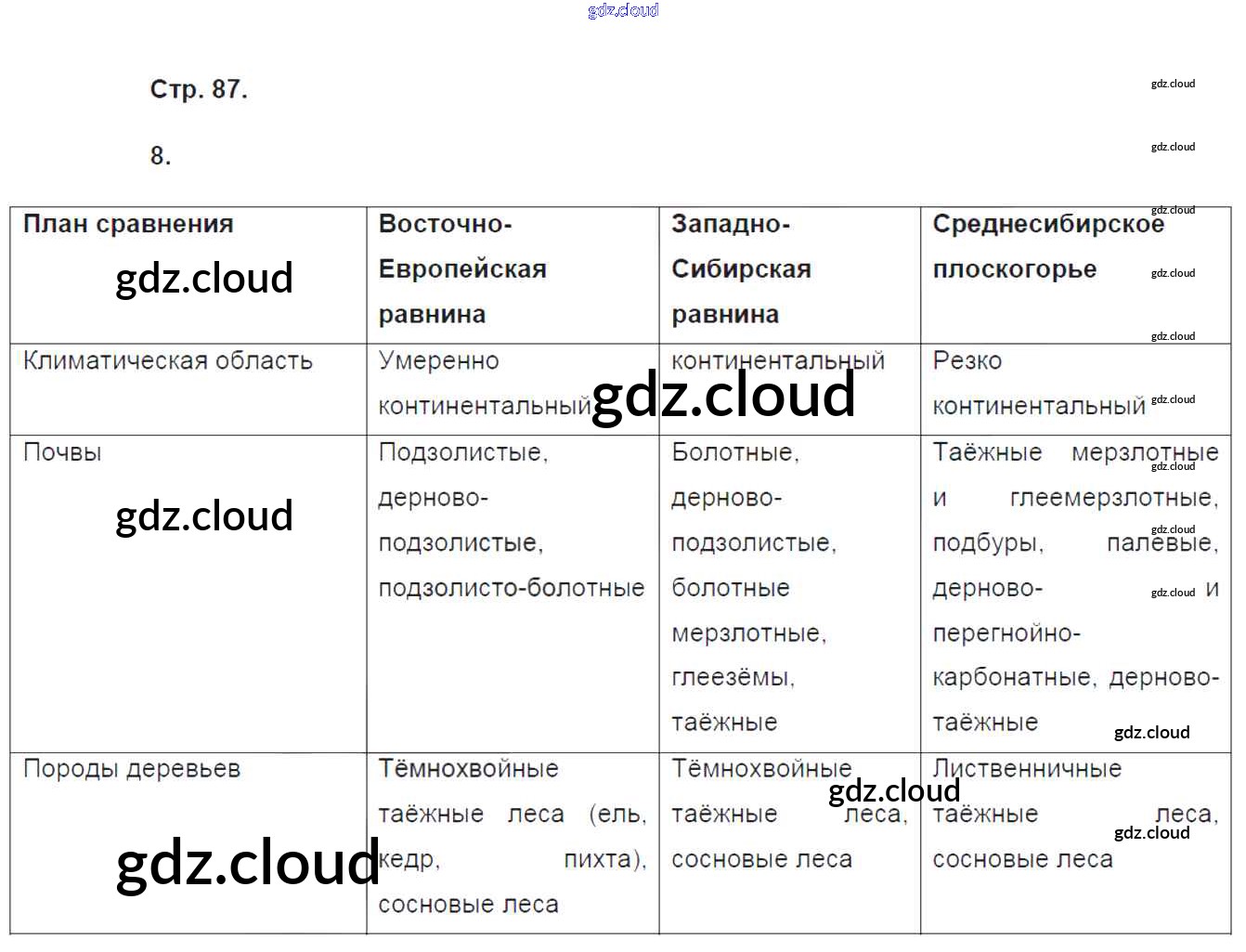 Ответ на задание 87 Рабочая тетрадь География за 8 (восьмой) класс Ким, Марченко, Низовцев УМК 2016 ФГОС онлайн и без номера телефона.