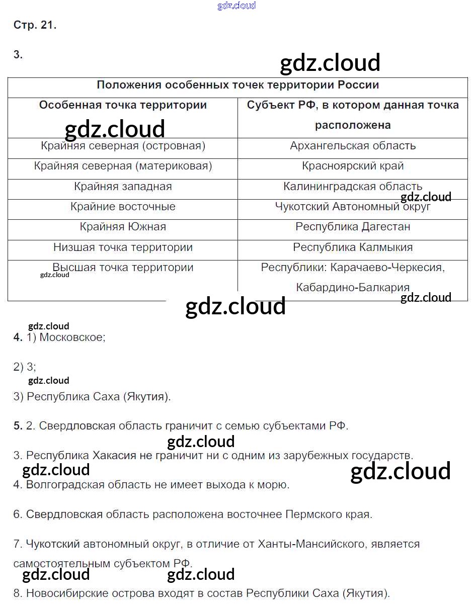 Ответ на задание стр.21 Рабочая тетрадь География за 8 (восьмой) класс Пятунин, Таможняя Алгоритм успеха 2017 Часть 1, 2