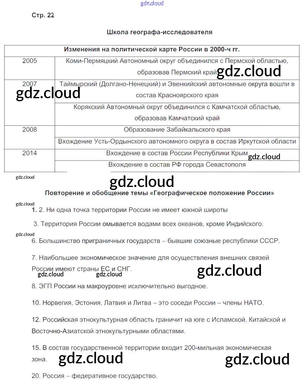 Ответ на задание стр.22 Рабочая тетрадь География за 8 (восьмой) класс Пятунин, Таможняя Алгоритм успеха 2017 Часть 1, 2