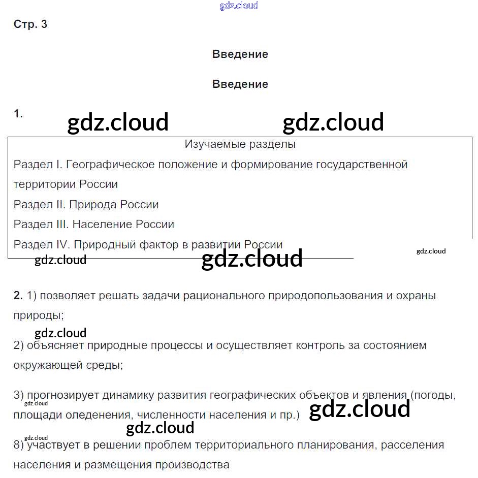 Ответ на задание стр.3 Рабочая тетрадь География за 8 (восьмой) класс Пятунин, Таможняя Алгоритм успеха 2017 Часть 1, 2