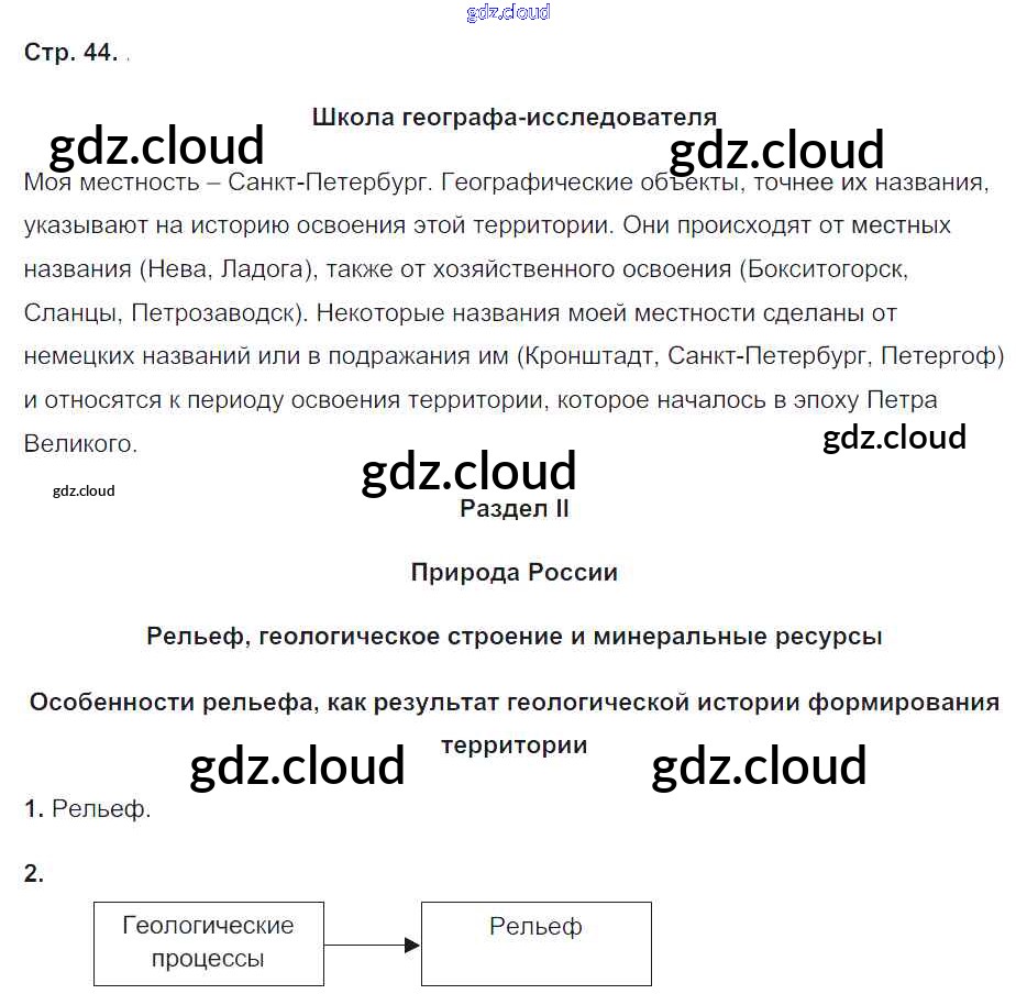 Ответ на задание стр.44 Рабочая тетрадь География за 8 (восьмой) класс Пятунин, Таможняя Алгоритм успеха 2017 Часть 1, 2