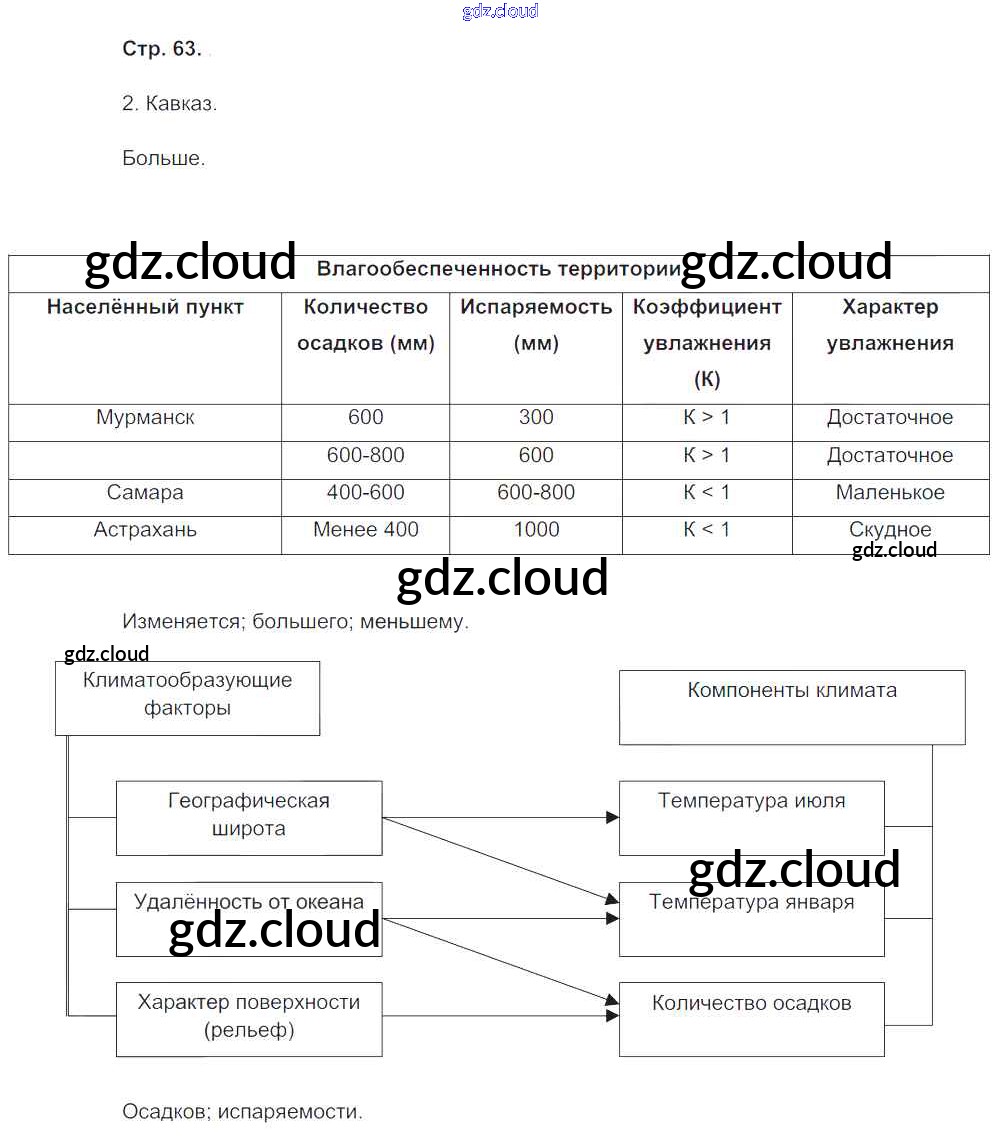 Ответ на задание стр.63 Рабочая тетрадь География за 8 (восьмой) класс Пятунин, Таможняя Алгоритм успеха 2017 Часть 1, 2