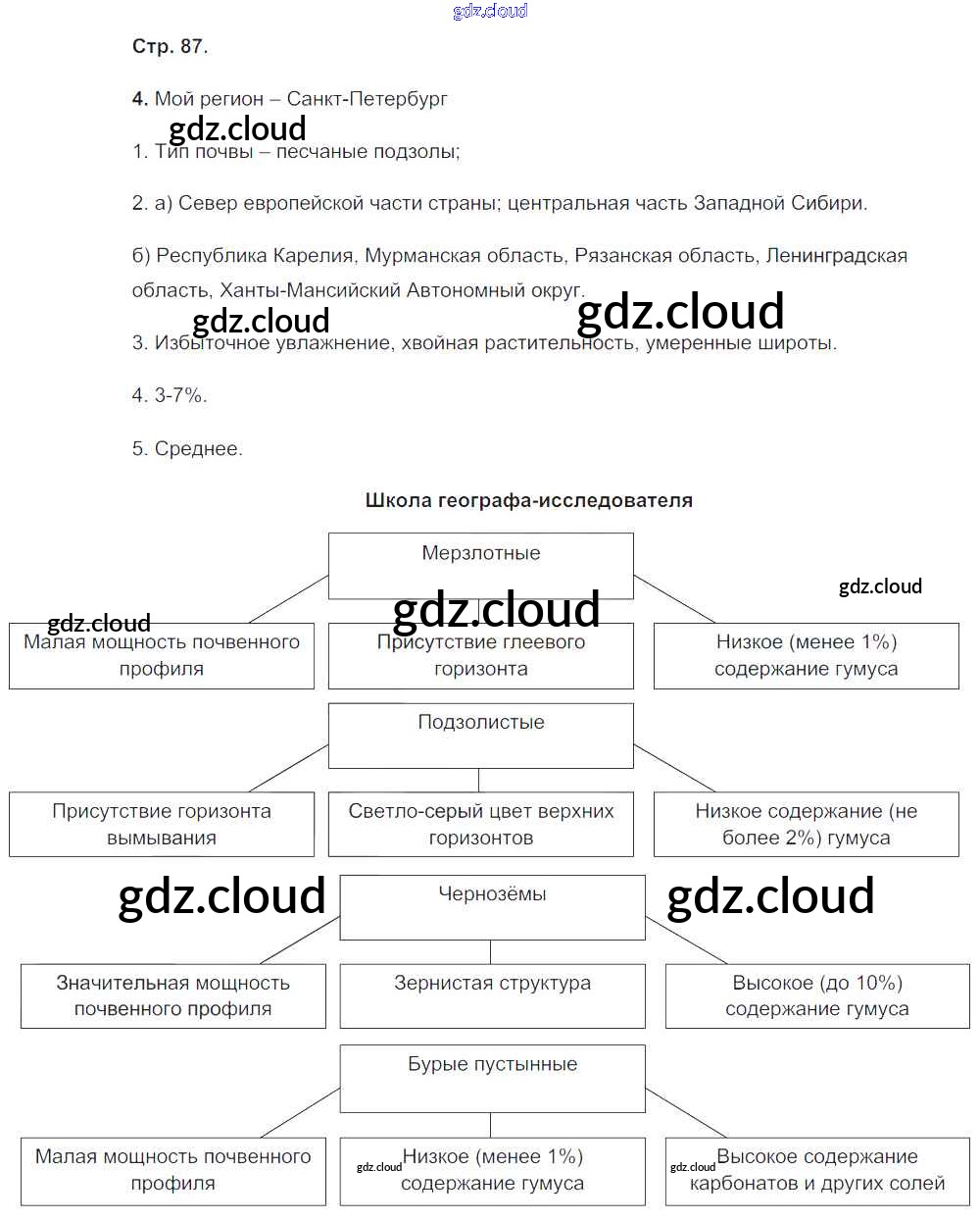 Ответ на задание стр.87 Рабочая тетрадь География за 8 (восьмой) класс Пятунин, Таможняя Алгоритм успеха 2017 Часть 1, 2