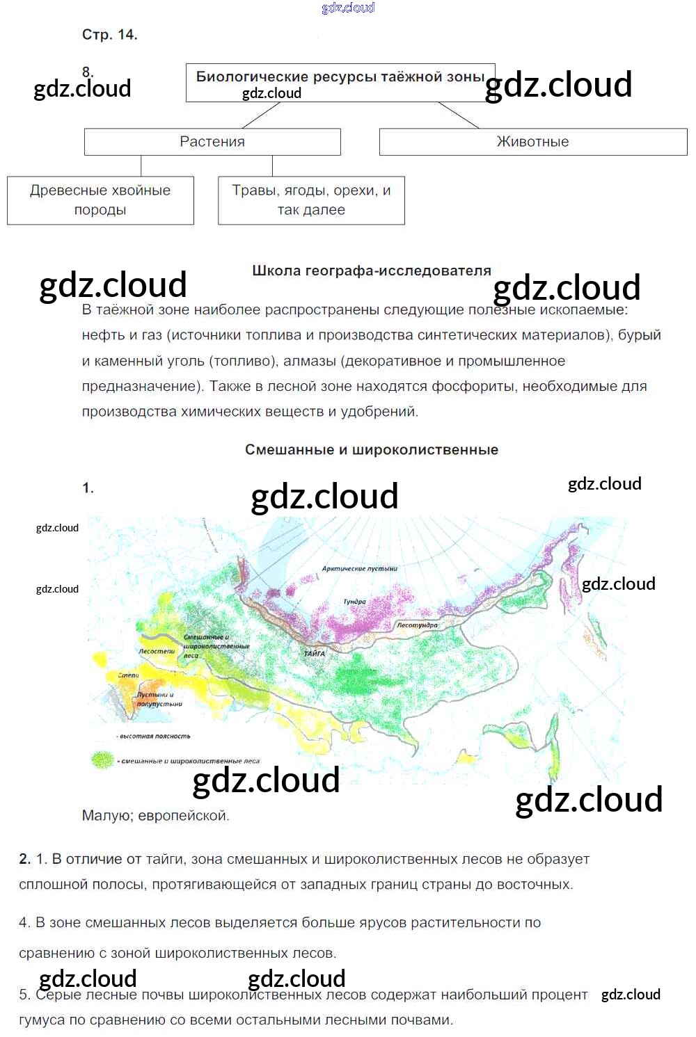 Ответ на задание стр.14 Рабочая тетрадь География за 8 (восьмой) класс Пятунин, Таможняя Алгоритм успеха 2017 Часть 1, 2