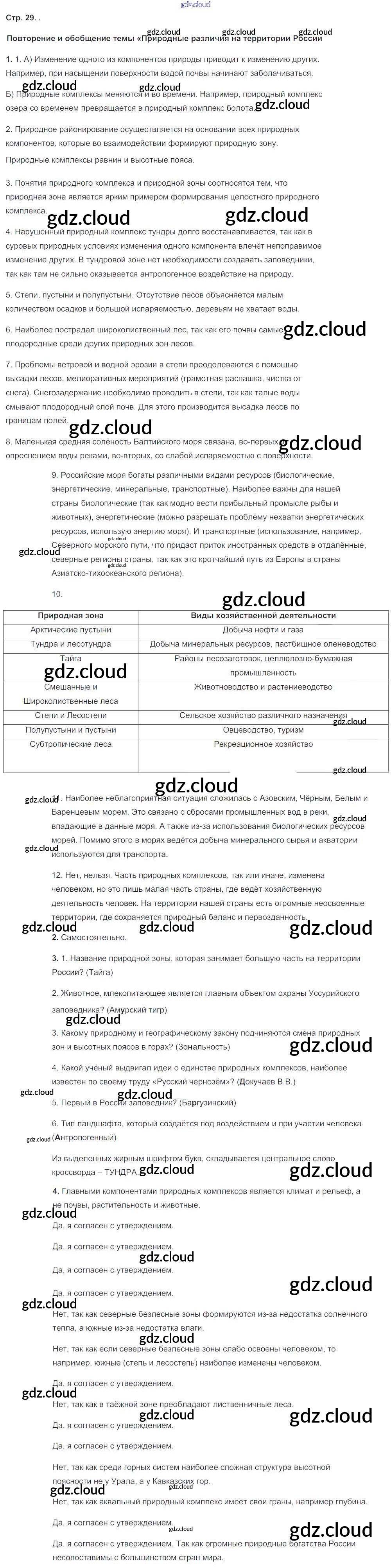 Ответ на задание стр.29 Рабочая тетрадь География за 8 (восьмой) класс Пятунин, Таможняя Алгоритм успеха 2017 Часть 1, 2