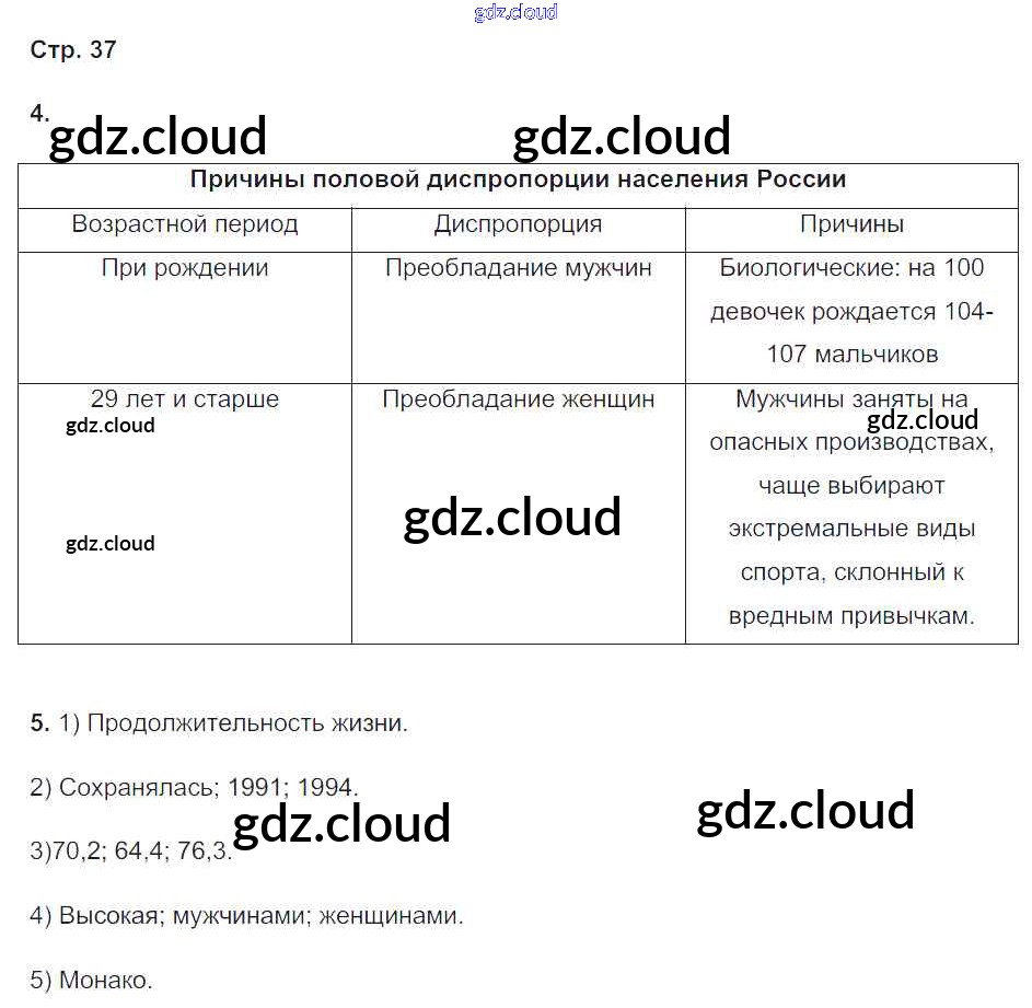 Ответ на задание стр.37 Рабочая тетрадь География за 8 (восьмой) класс Пятунин, Таможняя Алгоритм успеха 2017 Часть 1, 2