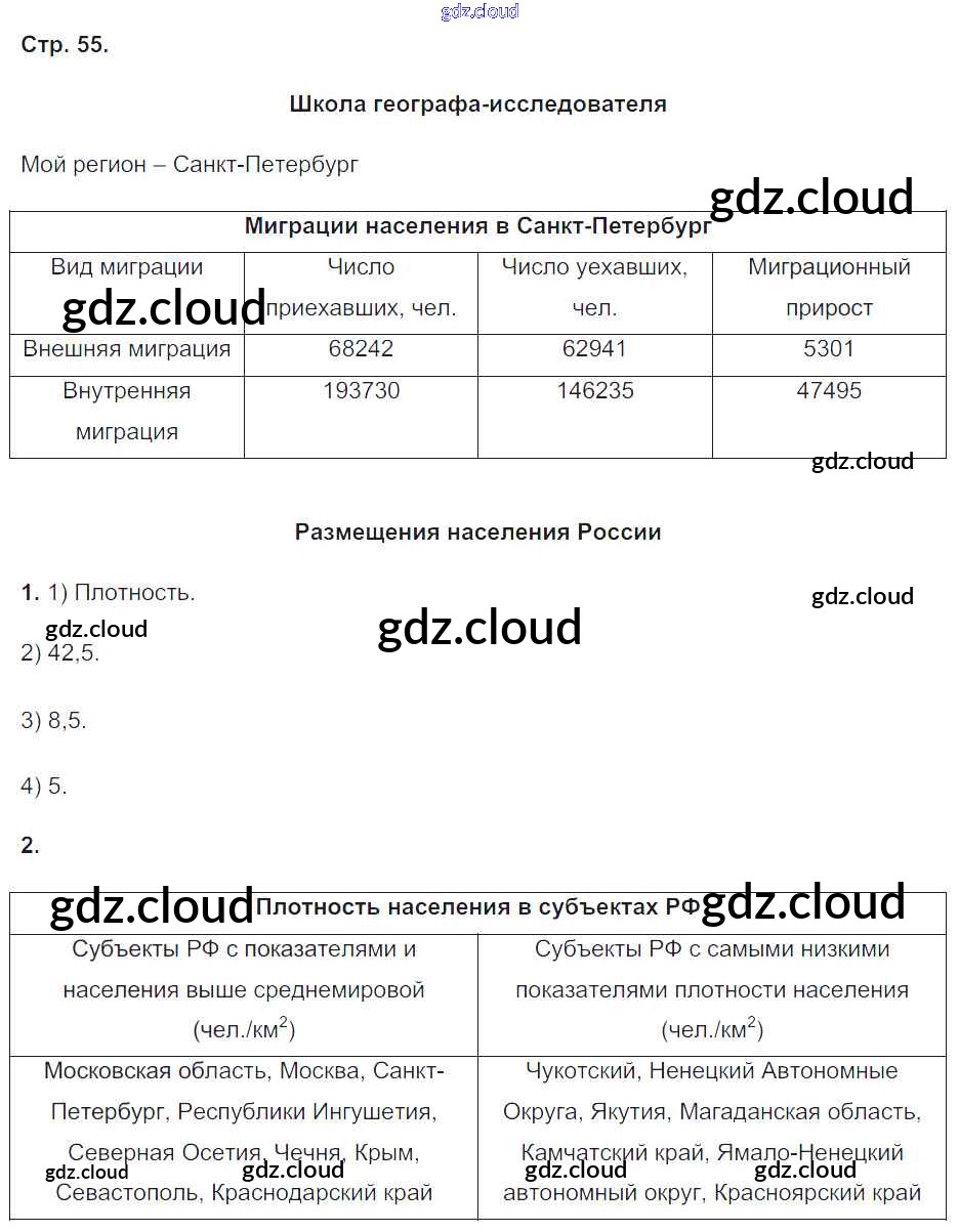 Ответ на задание стр.55 Рабочая тетрадь География за 8 (восьмой) класс Пятунин, Таможняя Алгоритм успеха 2017 Часть 1, 2