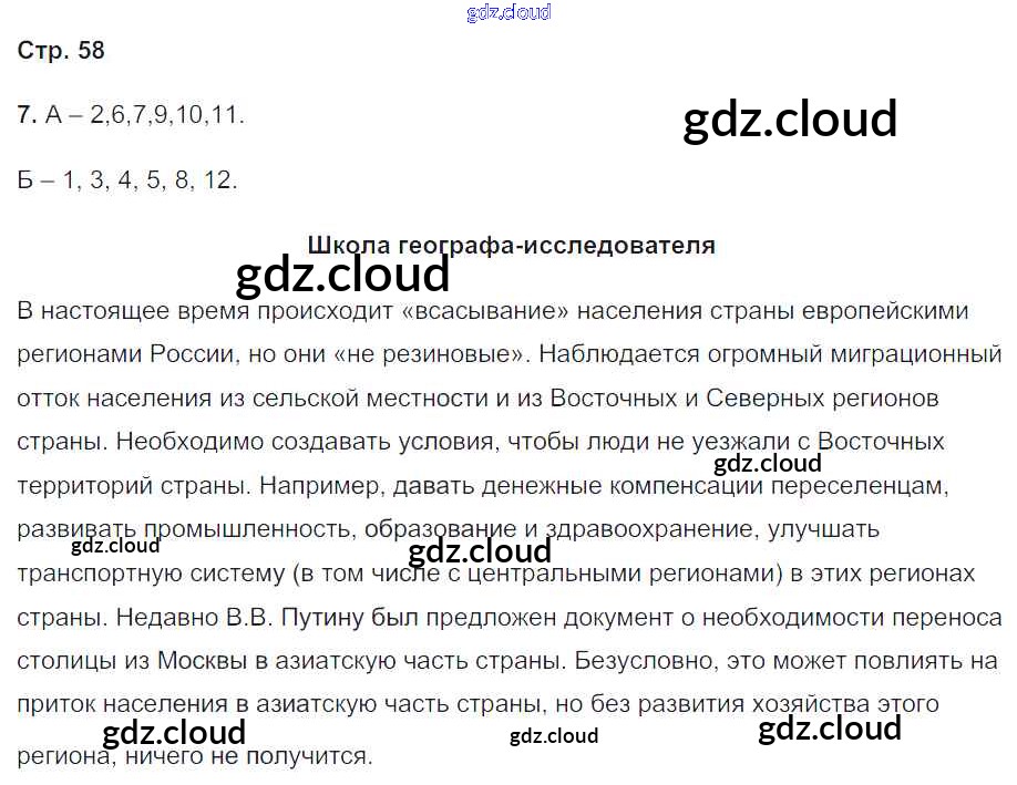 Ответ на задание стр.58 Рабочая тетрадь География за 8 (восьмой) класс Пятунин, Таможняя Алгоритм успеха 2017 Часть 1, 2