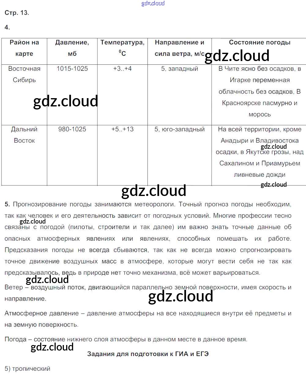 Ответ на задание 13 Рабочая тетрадь География за 8 (восьмой) класс Сиротин 2020 ФГОС онлайн и без номера телефона.