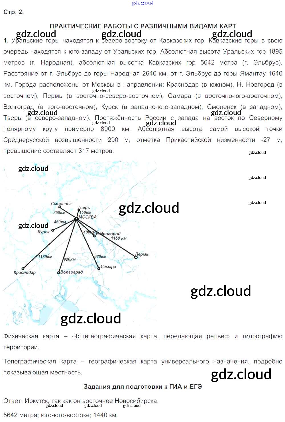 Ответ на задание 2 Рабочая тетрадь География за 8 (восьмой) класс Сиротин 2020 ФГОС онлайн и без номера телефона.