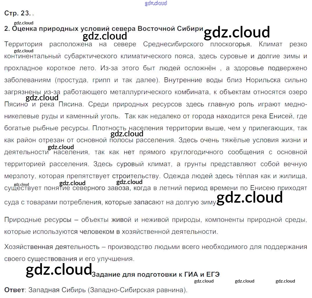 Ответ на задание 23 Рабочая тетрадь География за 8 (восьмой) класс Сиротин 2020 ФГОС онлайн и без номера телефона.