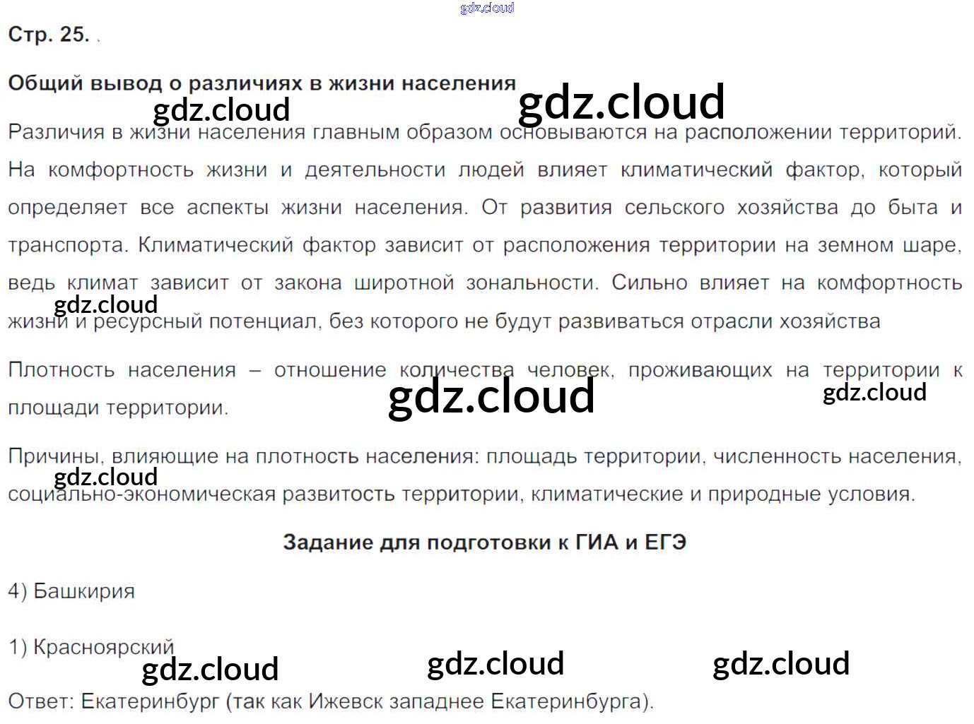 Ответ на задание 25 Рабочая тетрадь География за 8 (восьмой) класс Сиротин 2020 ФГОС онлайн и без номера телефона.