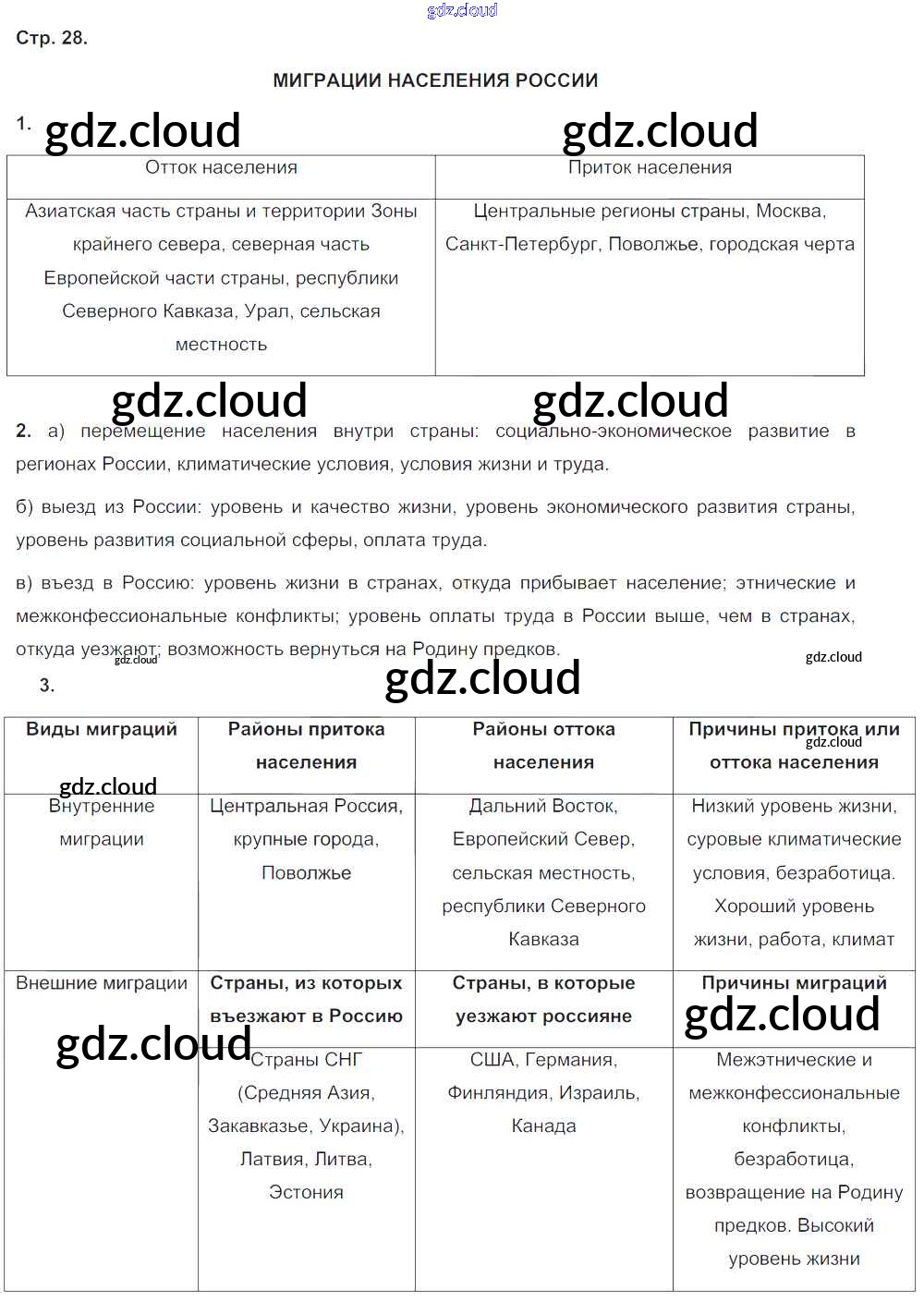 Ответ на задание 28 Рабочая тетрадь География за 8 (восьмой) класс Сиротин 2020 ФГОС онлайн и без номера телефона.