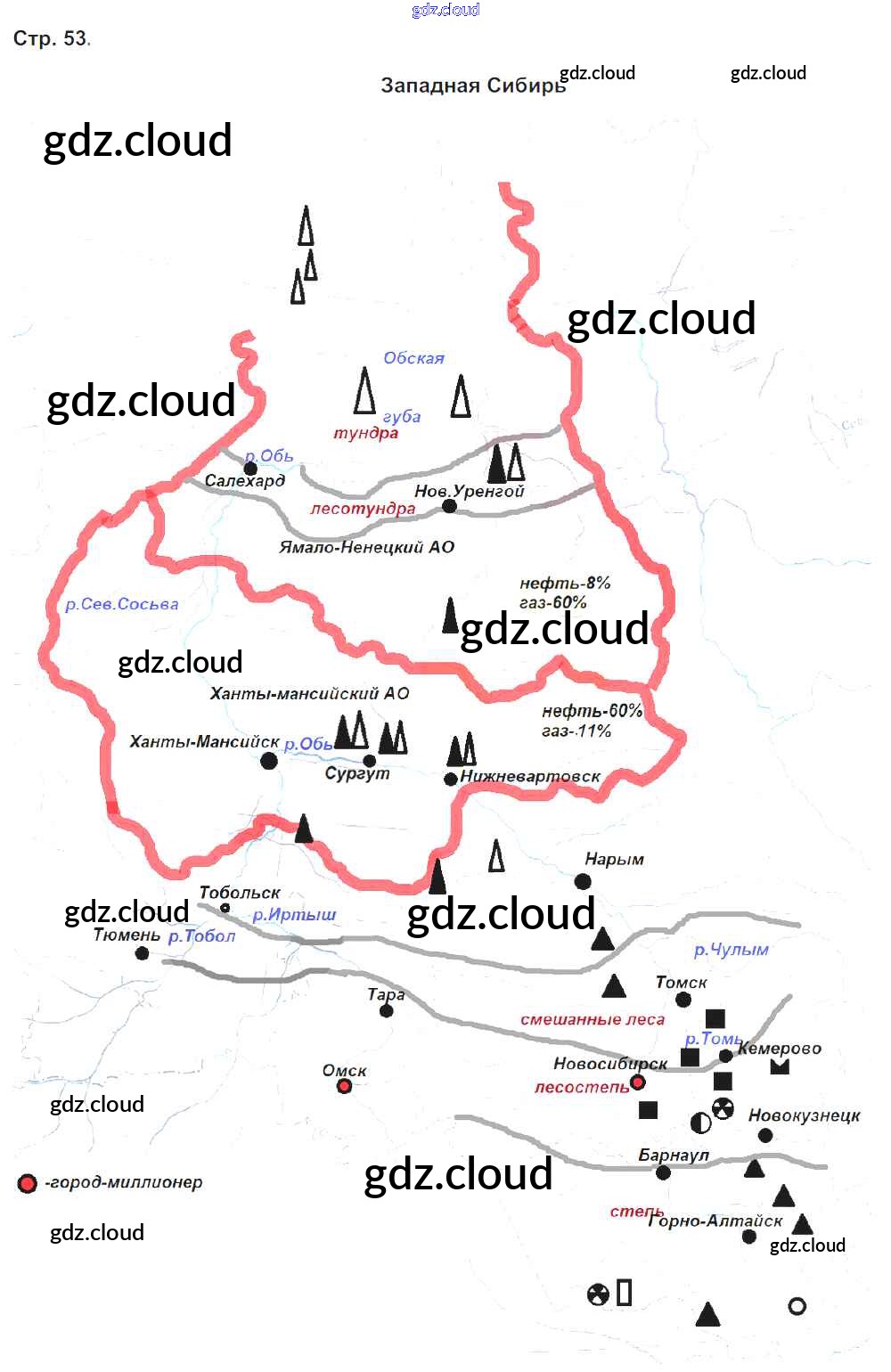 Ответ на задание 53 Рабочая тетрадь География за 8 (восьмой) класс Сиротин 2020 ФГОС онлайн и без номера телефона.
