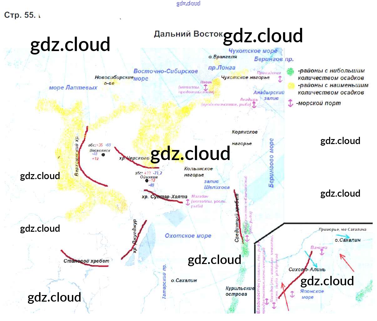 Ответ на задание 55 Рабочая тетрадь География за 8 (восьмой) класс Сиротин 2020 ФГОС онлайн и без номера телефона.