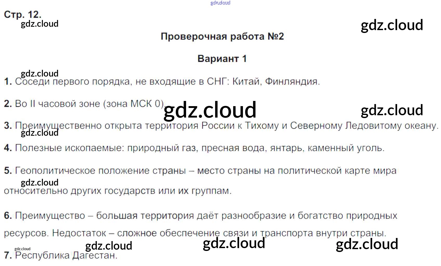 Ответ на задание 12 Тетрадь-экзаменатор География за 8 (восьмой) класс Барабанов Сферы 2016 ФГОС онлайн и без номера телефона.