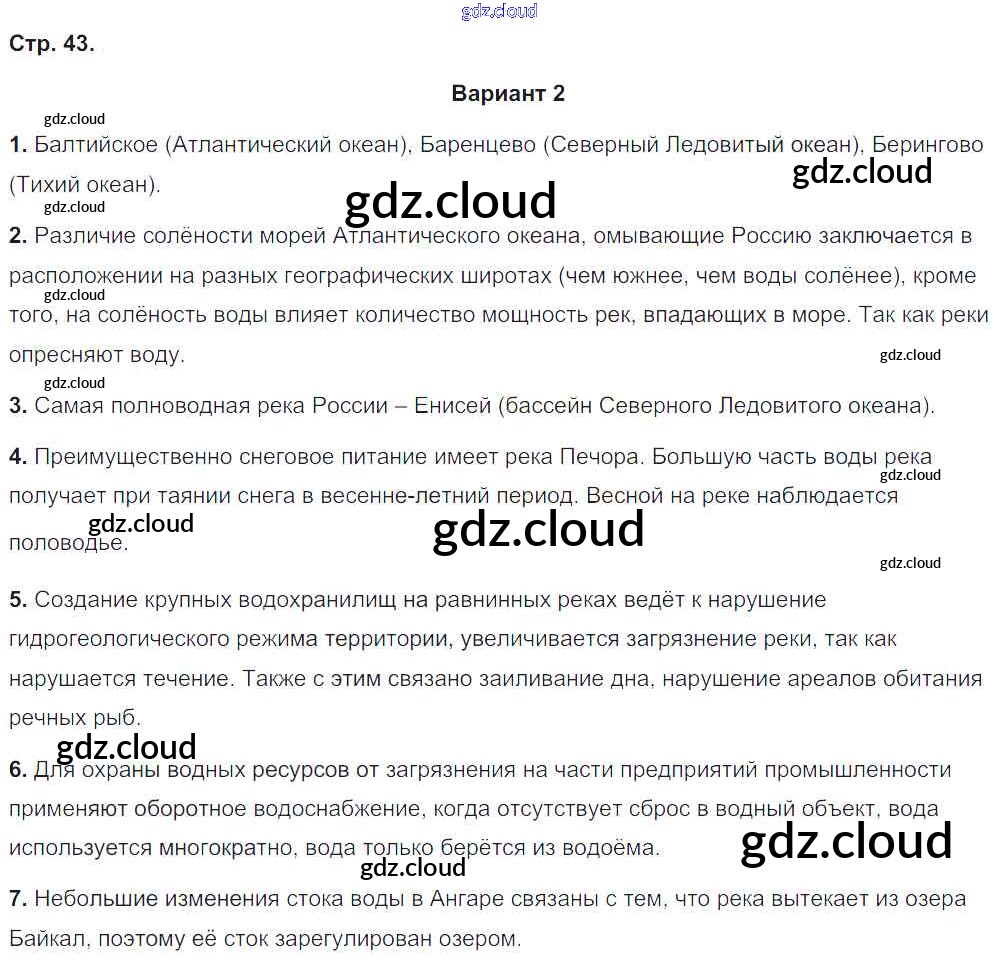 Ответ на задание 43 Тетрадь-экзаменатор География за 8 (восьмой) класс Барабанов Сферы 2016 ФГОС онлайн и без номера телефона.