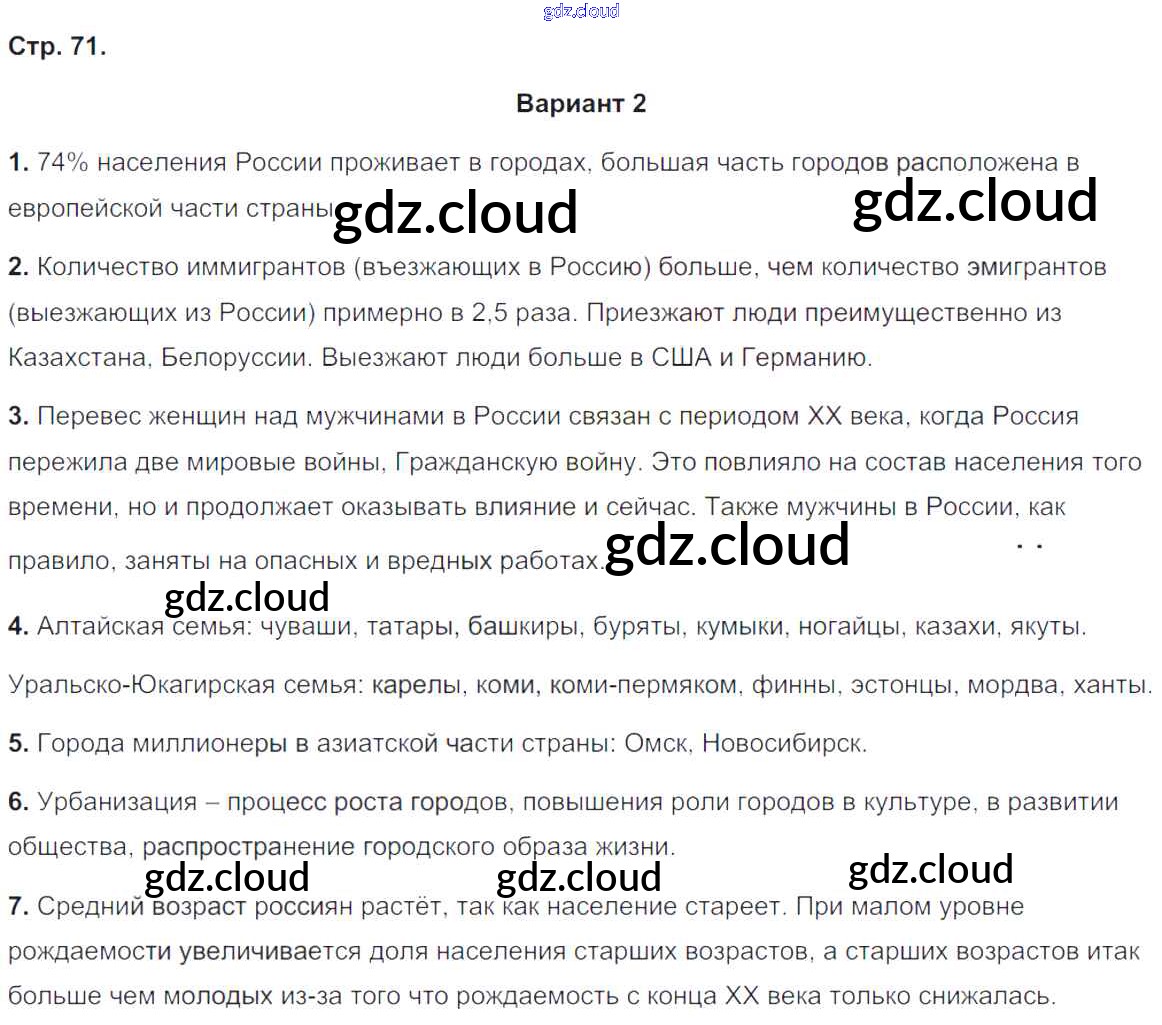 Ответ на задание 71 Тетрадь-экзаменатор География за 8 (восьмой) класс Барабанов Сферы 2016 ФГОС онлайн и без номера телефона.