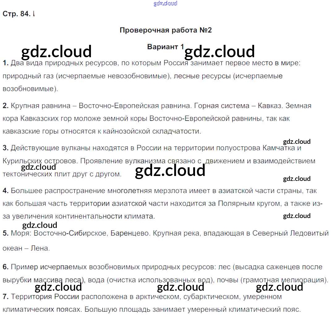 Ответ на задание 84 Тетрадь-экзаменатор География за 8 (восьмой) класс Барабанов Сферы 2016 ФГОС онлайн и без номера телефона.