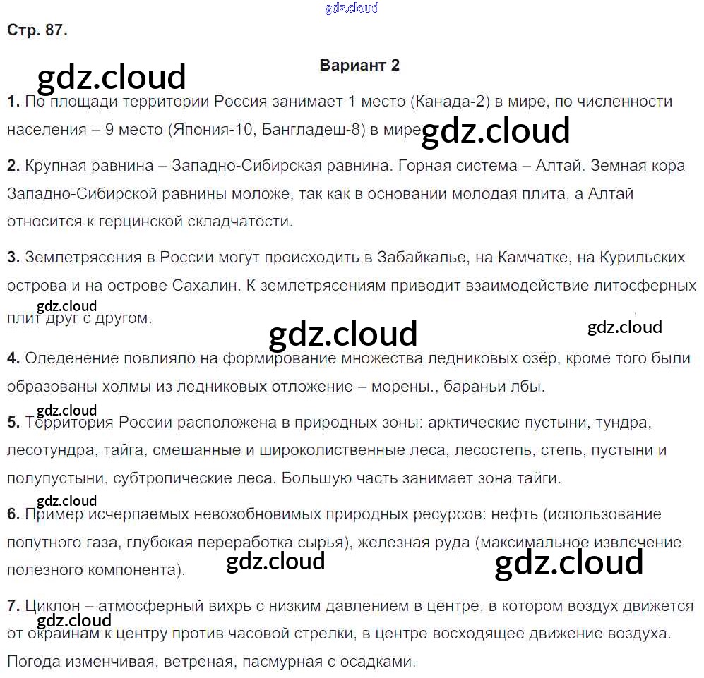 Ответ на задание 87 Тетрадь-экзаменатор География за 8 (восьмой) класс Барабанов Сферы 2016 ФГОС онлайн и без номера телефона.