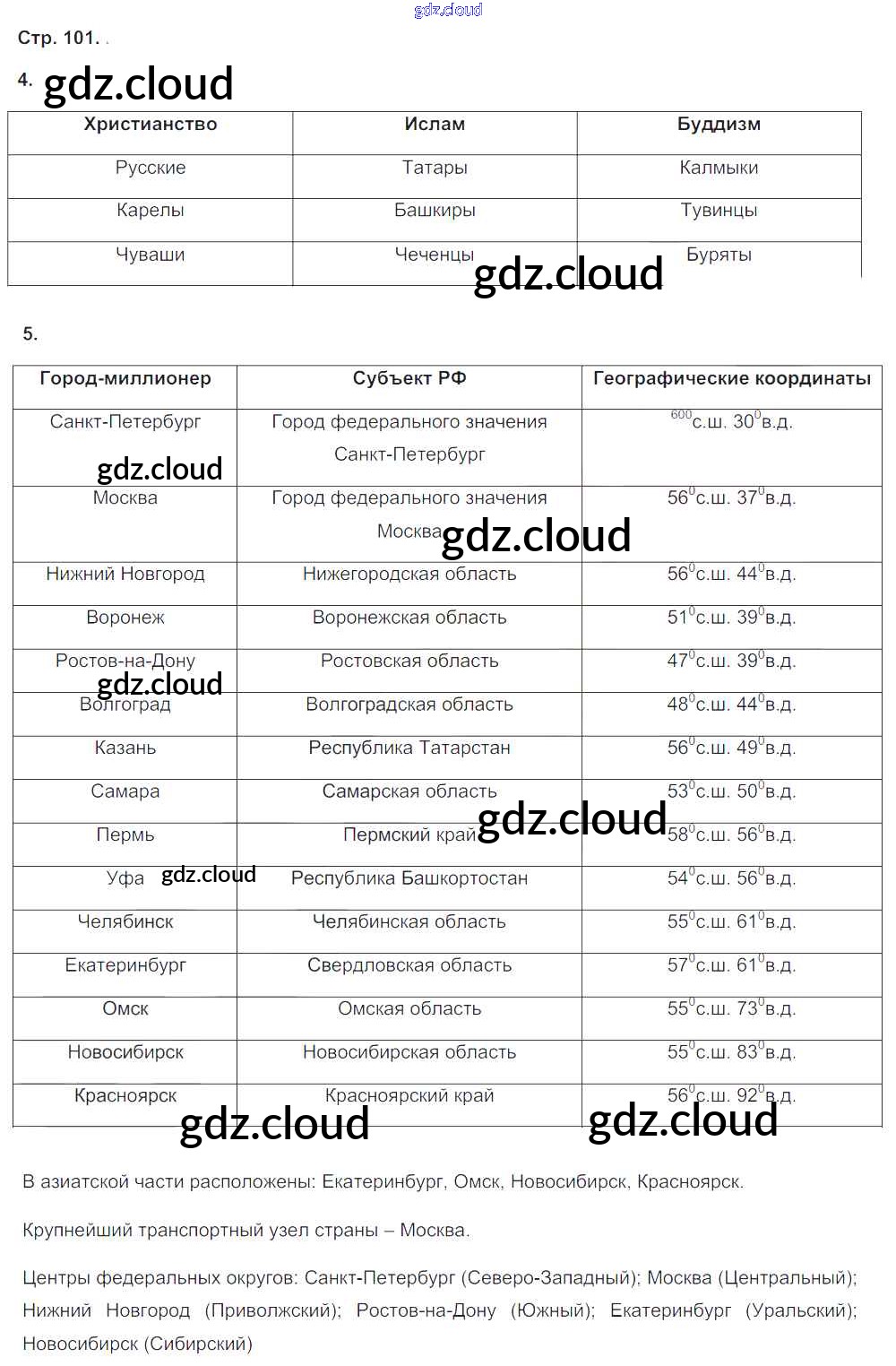 Ответ на задание 101 Тетрадь-тренажер География за 8 (восьмой) класс Ольховая, Банников Сферы 2016 ФГОС онлайн и без номера телефона.