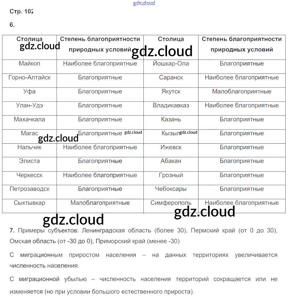 Ответ на задание 102 Тетрадь-тренажер География за 8 (восьмой) класс Ольховая, Банников Сферы 2016 ФГОС онлайн и без номера телефона.