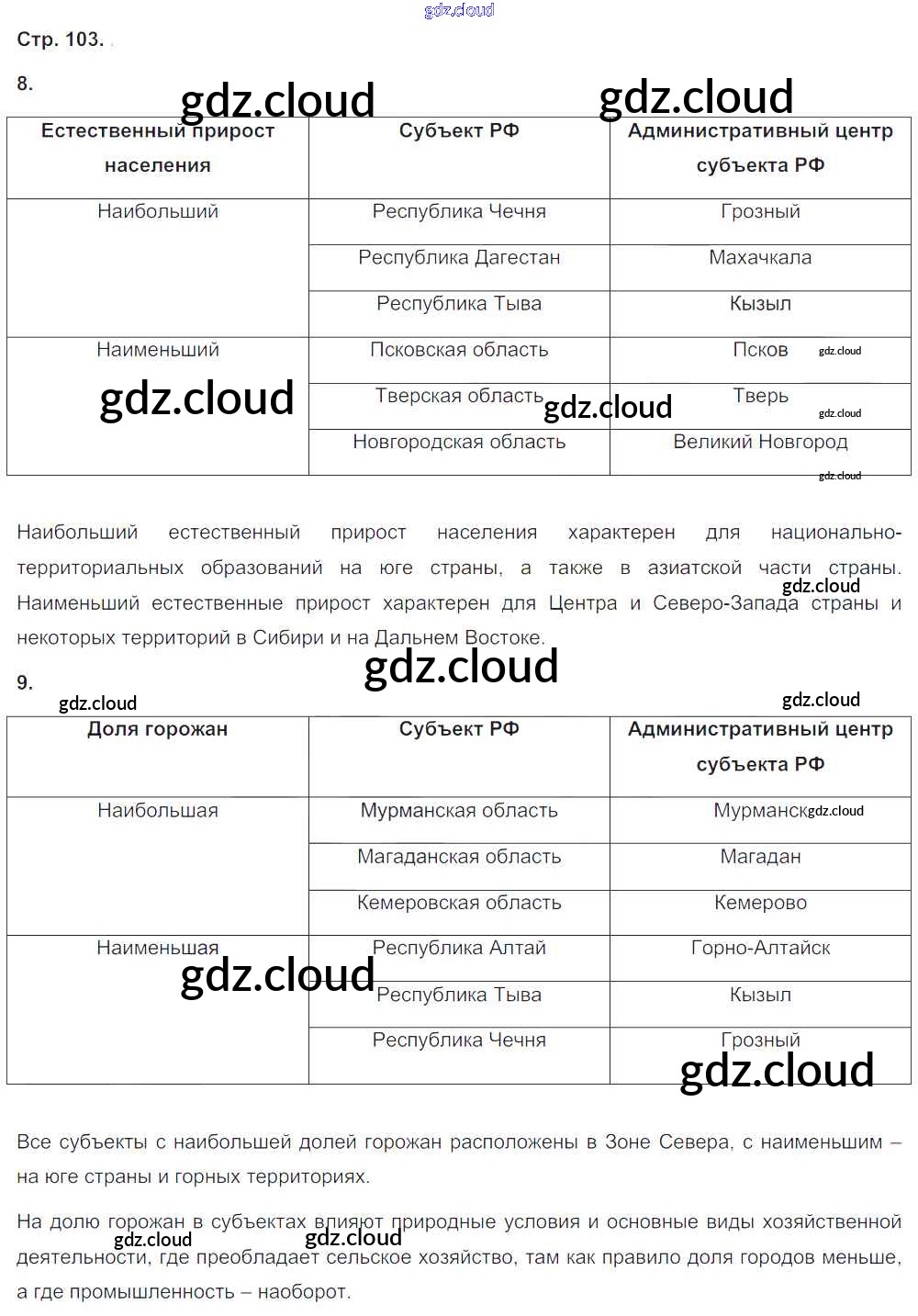 Ответ на задание 103 Тетрадь-тренажер География за 8 (восьмой) класс Ольховая, Банников Сферы 2016 ФГОС онлайн и без номера телефона.