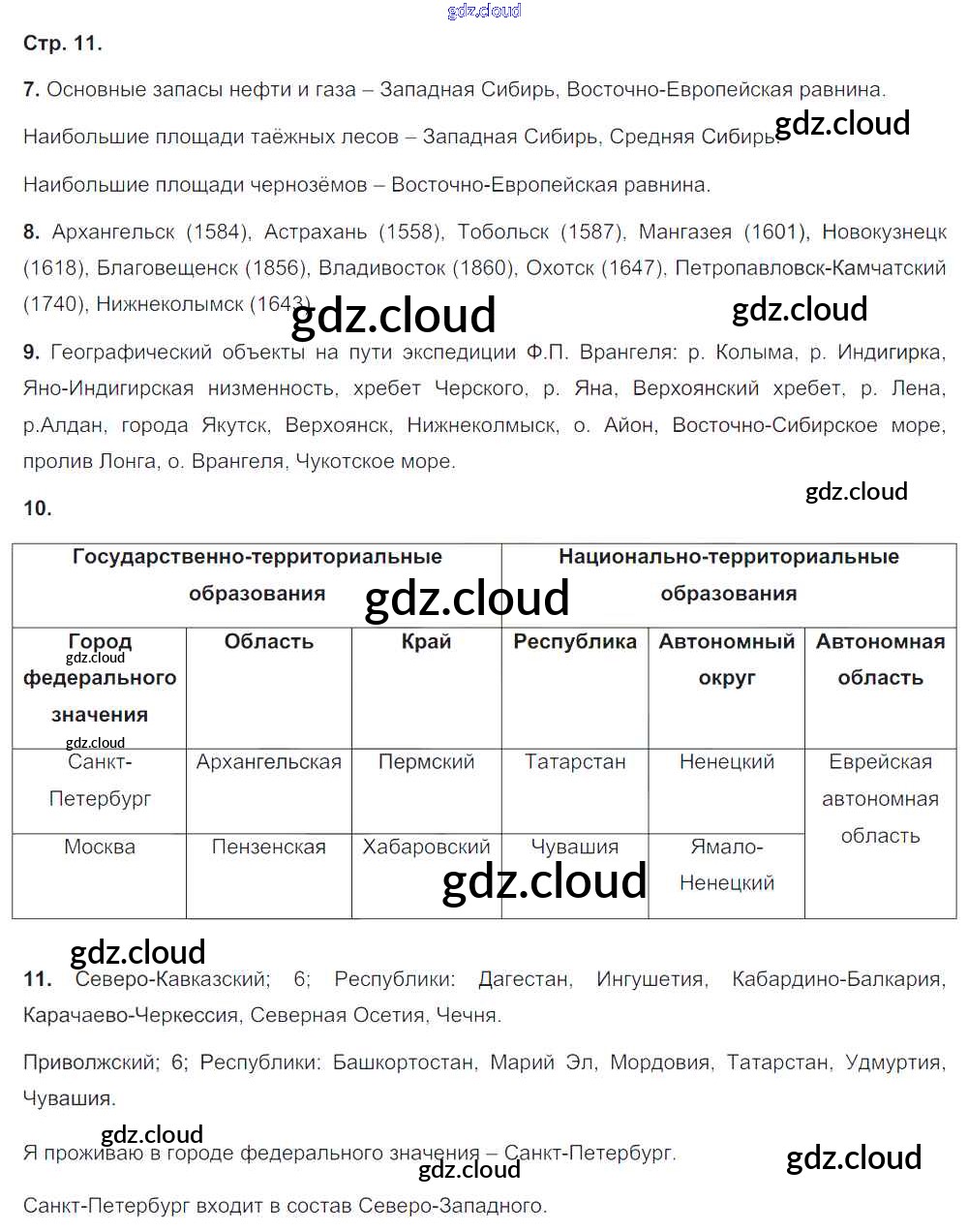Ответ на задание 11 Тетрадь-тренажер География за 8 (восьмой) класс Ольховая, Банников Сферы 2016 ФГОС онлайн и без номера телефона.