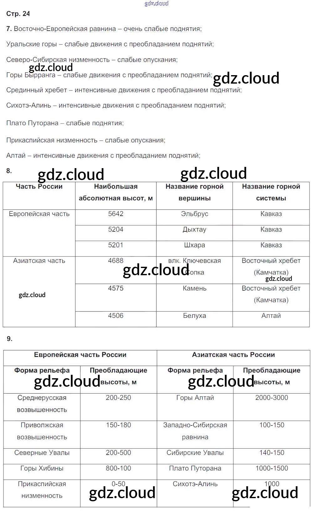 Ответ на задание 24 Тетрадь-тренажер География за 8 (восьмой) класс Ольховая, Банников Сферы 2016 ФГОС онлайн и без номера телефона.